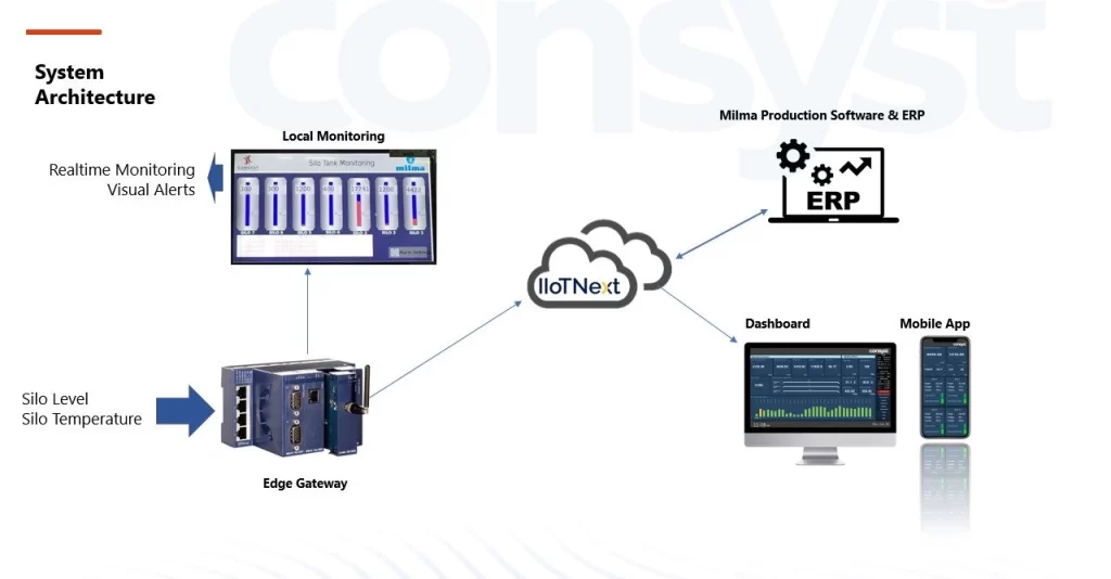 CONSYST developed an IIoT solution to include continuous measurement and logging of milk levels and temperature in silos, with edge computing alerts to take preventive actions through a mobile application.